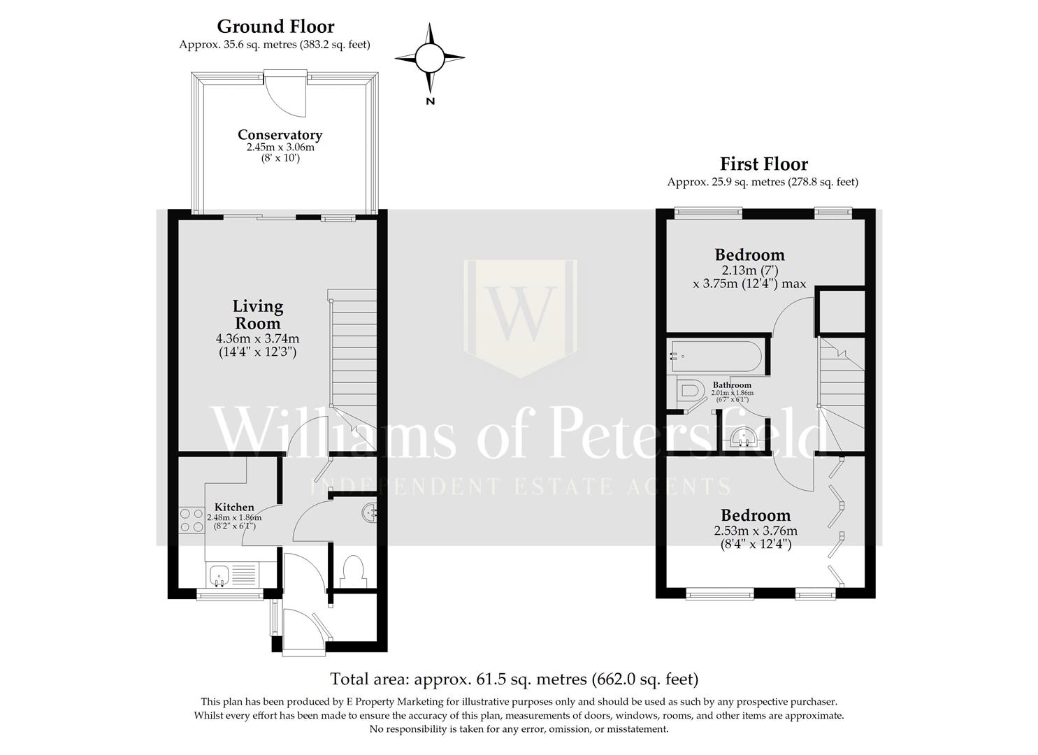 Upstairs, there are two comfortable bedrooms, including a spacious main double with built-in storage and a bright second bedroom ideal for guests or a home office. The family bathroom includes a bath with the convenience of a shower over it.