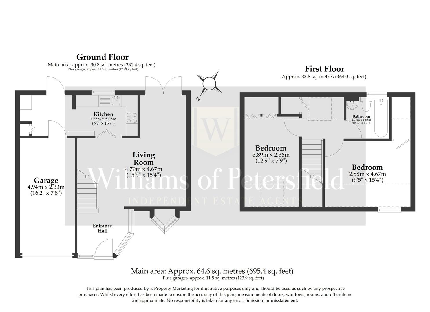 A great opportunity to purchase this two-bedroom home for the over 55’s in the heart of Petersfield, which is offered for sale with immediate vacant possession. The accommodation comprises a front door opening into an entrance lobby with double glazed windows and access to the bright and welcoming living/dining room, which is an ‘L’ shaped space featuring a pine balustrade staircase leading to the first floor. The adjoining kitchen is fitted with modern white units, plenty of storage and a integrated oven.
